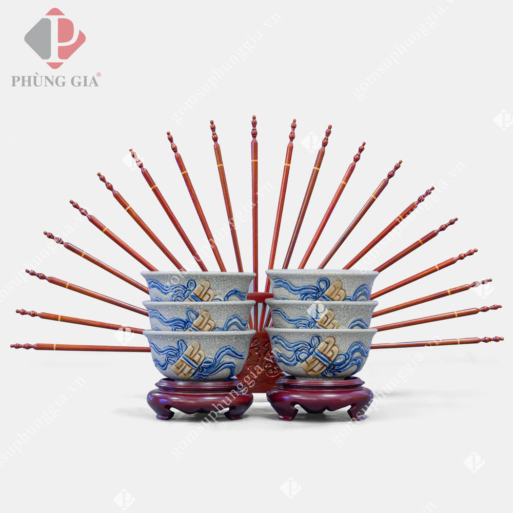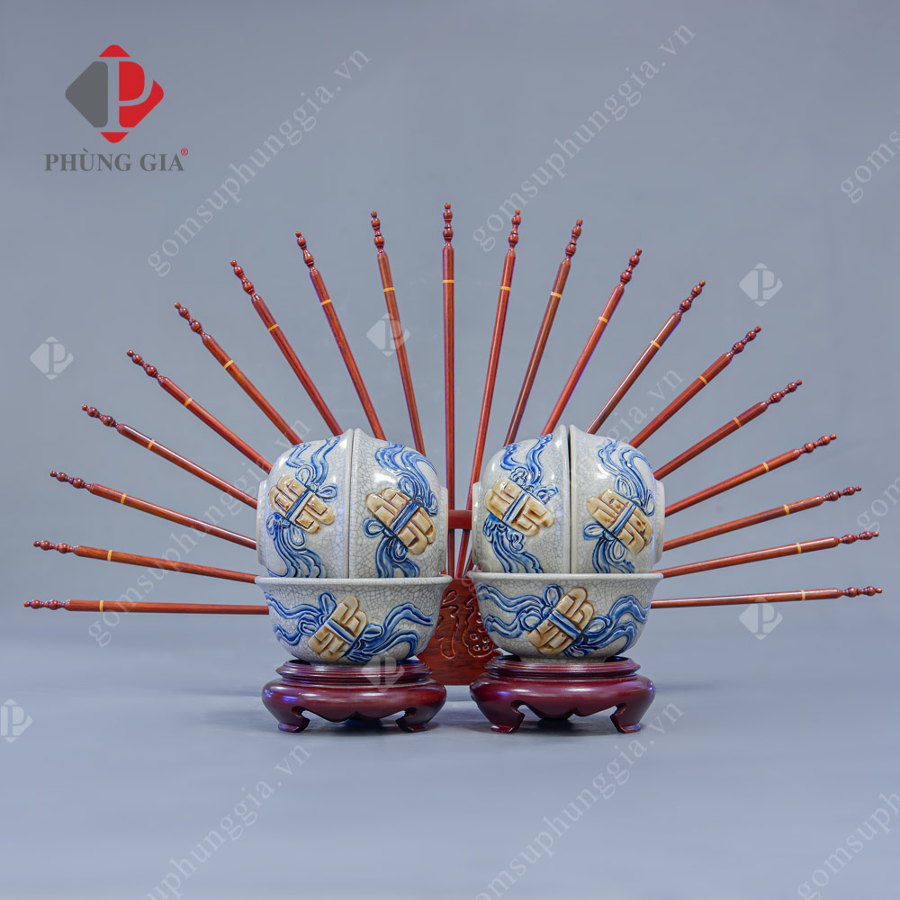 Bộ đồ thờ men rạn đắp nổi tại tư gia khách hàng Phùng Gia.