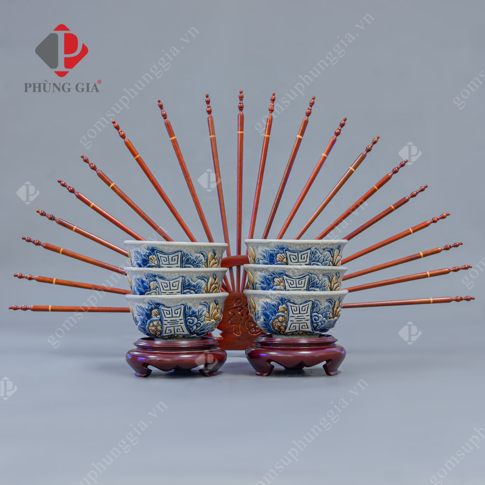 Bộ đồ thờ men rạn đắp nổi tại tư gia khách hàng Phùng Gia.