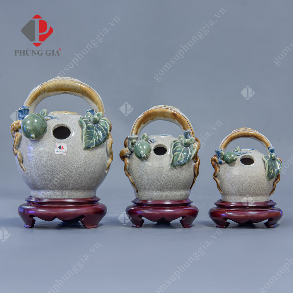 Bộ đồ thờ men rạn đắp nổi tại tư gia khách hàng Phùng Gia.