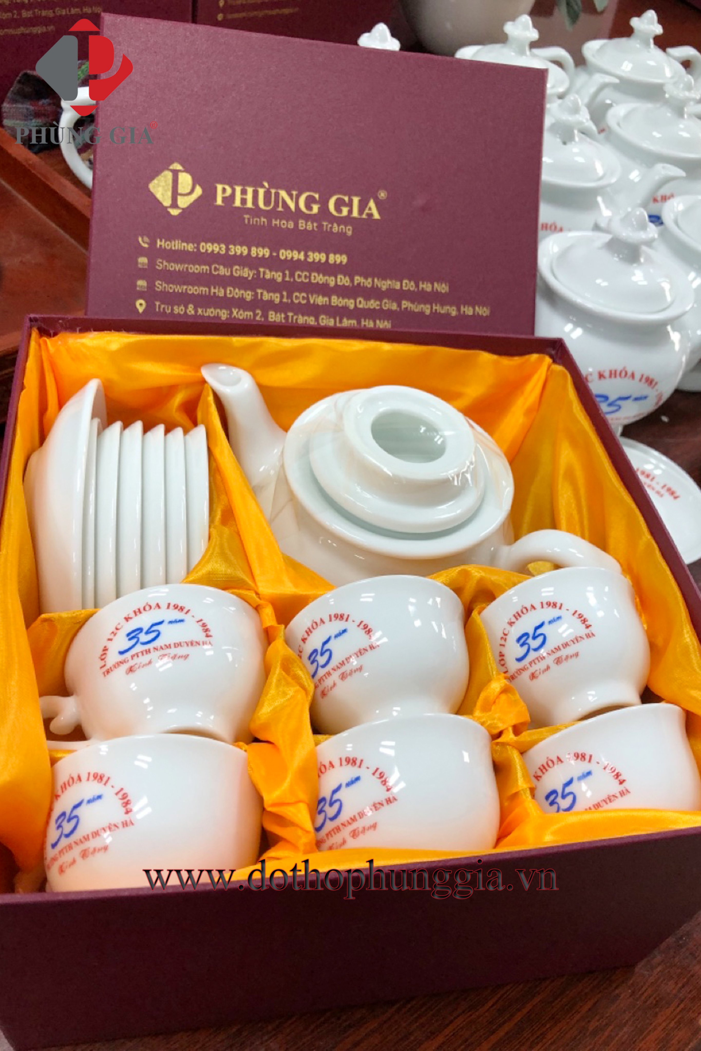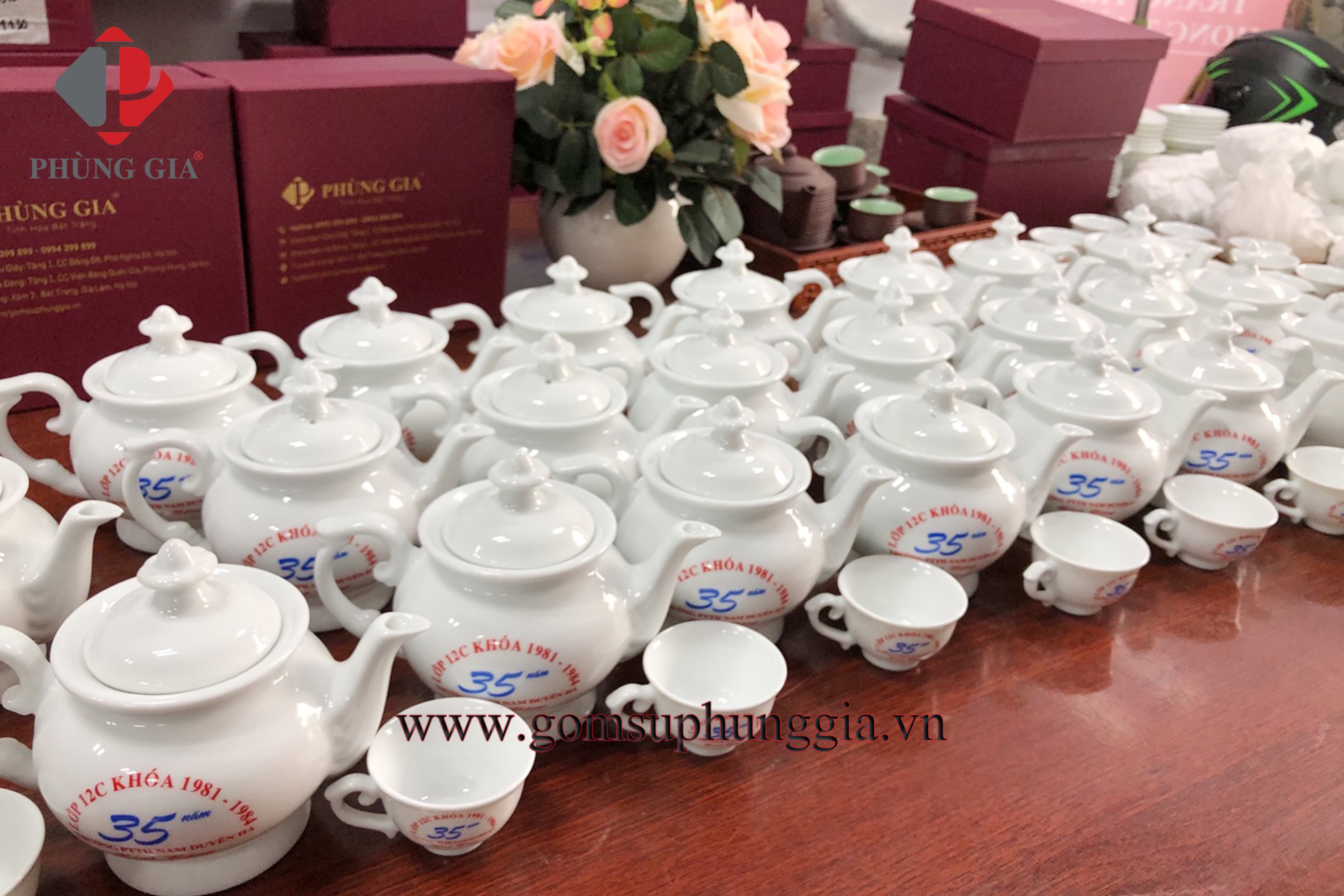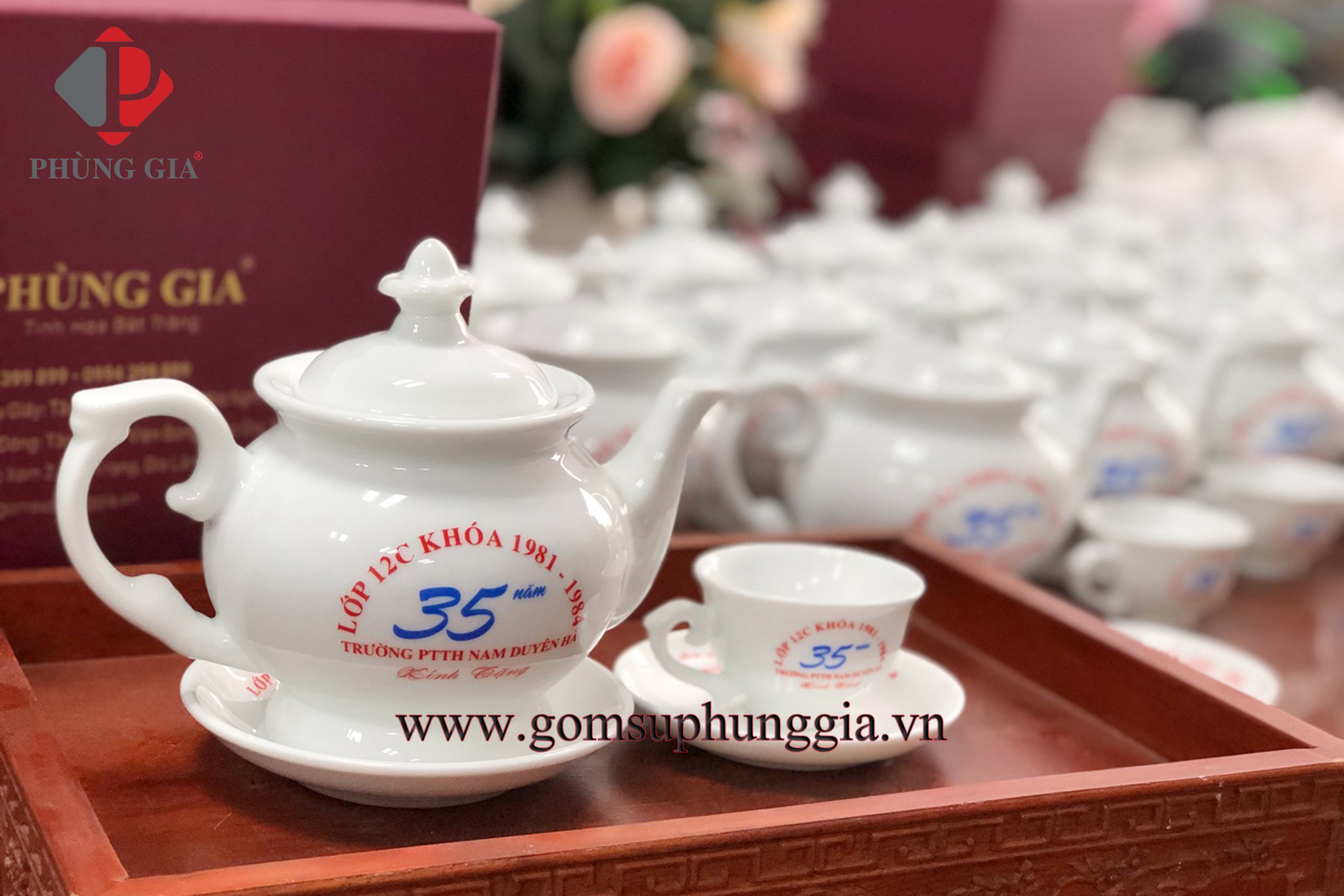 Và quan trọng hơn rất nhiều doanh nghiệp thường sử dụng bộ ấm trà in logo để làm quà tặng khách hàng, nhân viên vào dịp lễ tết nguyên đán, hoặc kỷ niệm ngày thành lập công…. Là một trong những bộ quà tặng giá thành khá rẻ so với nhiều sản phẩm quà tặng khác trên thị trường, song lại đem đến giá trị sử dụng cao, kiểu dáng cũng đa dạng mẫu mã. Món quà tặng cao cấp với chi phí rẻ chỉ khoảng dưới 1tr, với hoàn thiện khá đầy đủ từ in logo lên ấm chén, hộp xi lót lụa hoặc giấy, và túi xách. Đặc biệt ở mẫu ấm chén quà tặng này được miễn phí thiết kế maket logo & hoạ tiết in màu hoặc viền vàng thật theo yêu cầu của quý khách. Thể hiện lời cảm ơn, tri ân tới khách hàng - lựa chọn sản phẩm, dịch vụ; tới cán bộ công nhân viên - luôn đồng hành cùng doanh nghiệp, cơ quan.