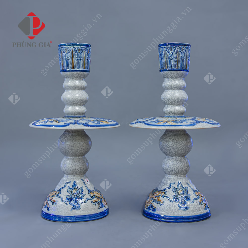 - Gốm sứ Phùng Gia sản xuất đủ các kích cỡ đèn thờ, chân nến, cây nến men rạn nổi để đáp ứng nhu cầu đa dạng của Quý khách