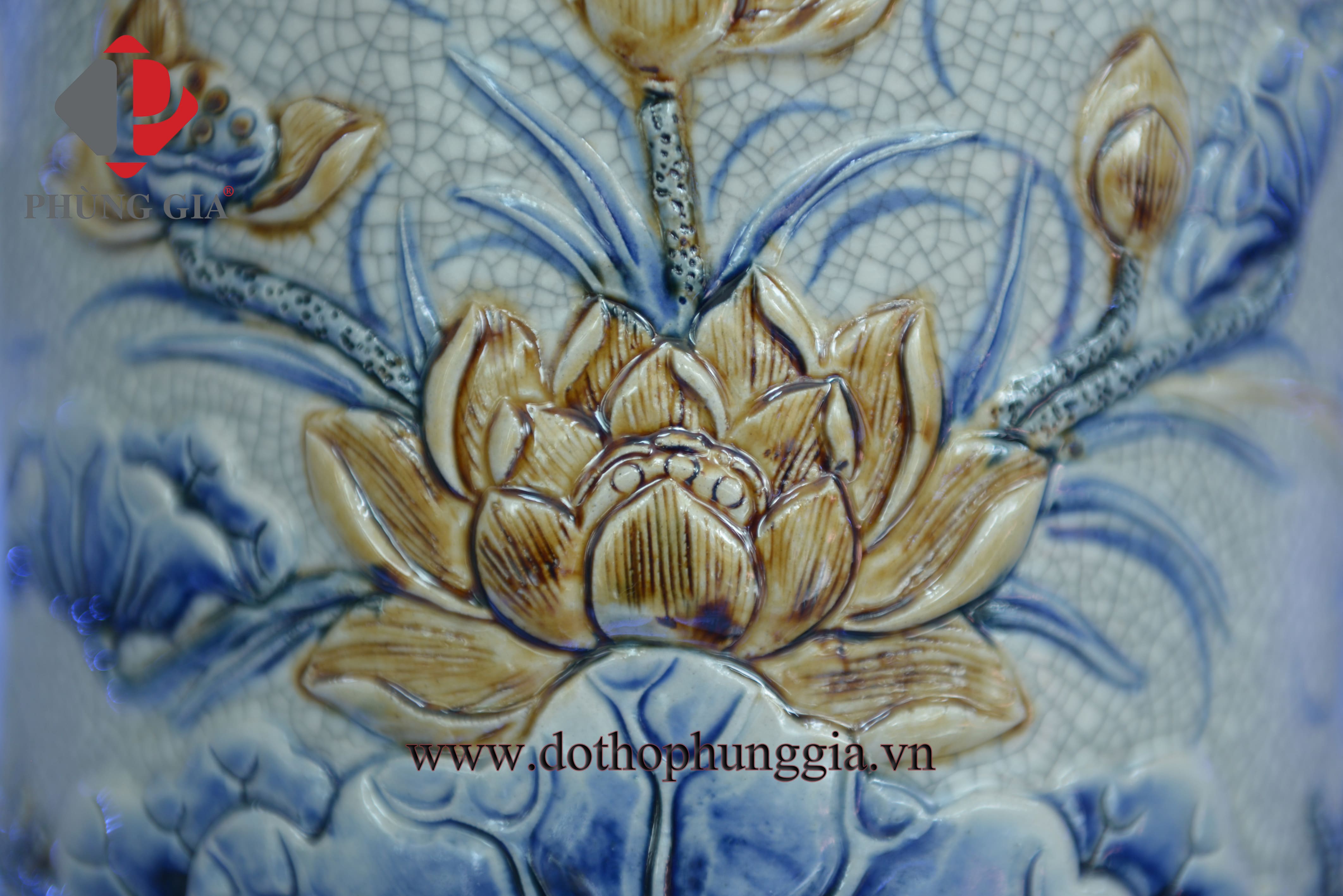 Với 2 hoạ tiết là đắp nổi hoa sen & lưỡng long.