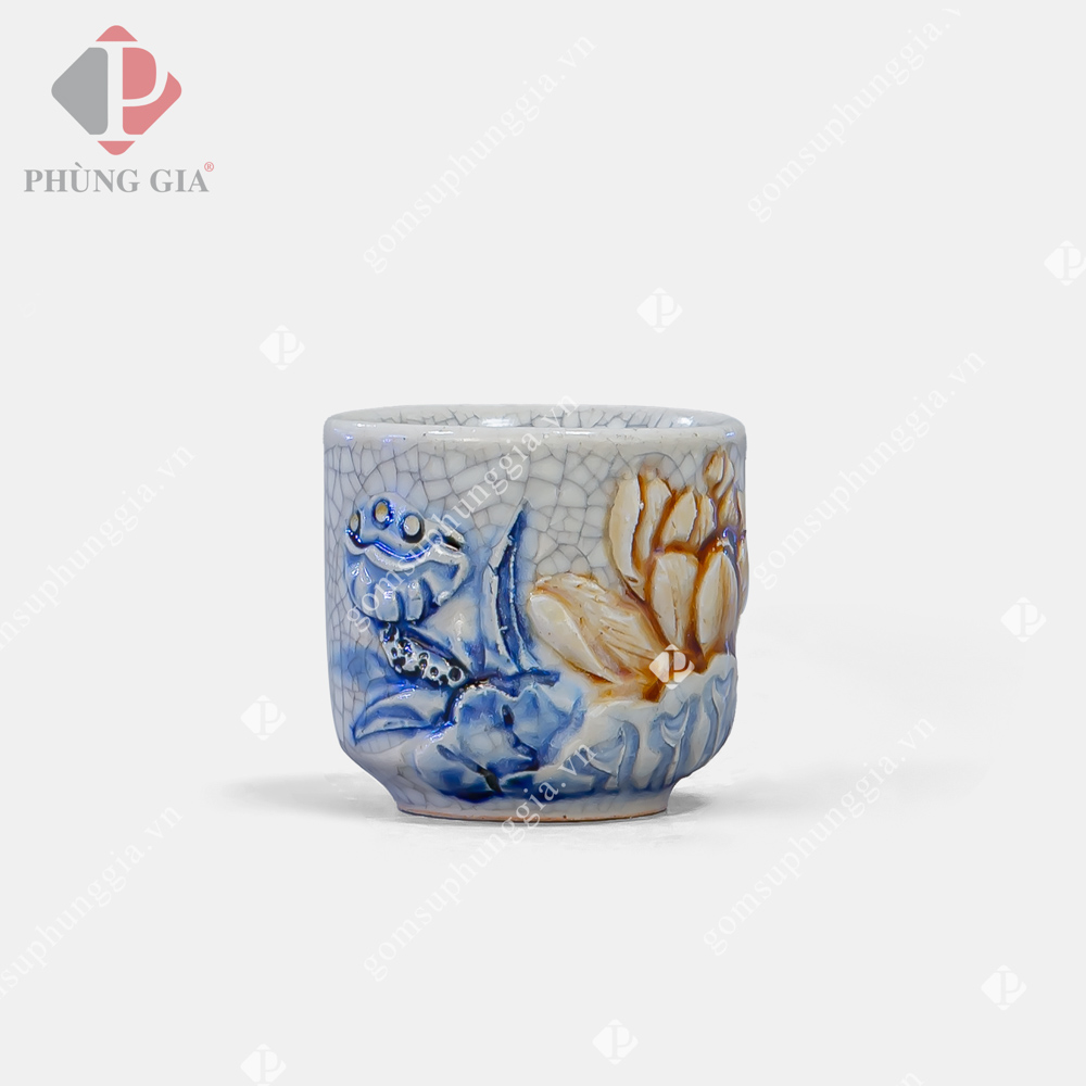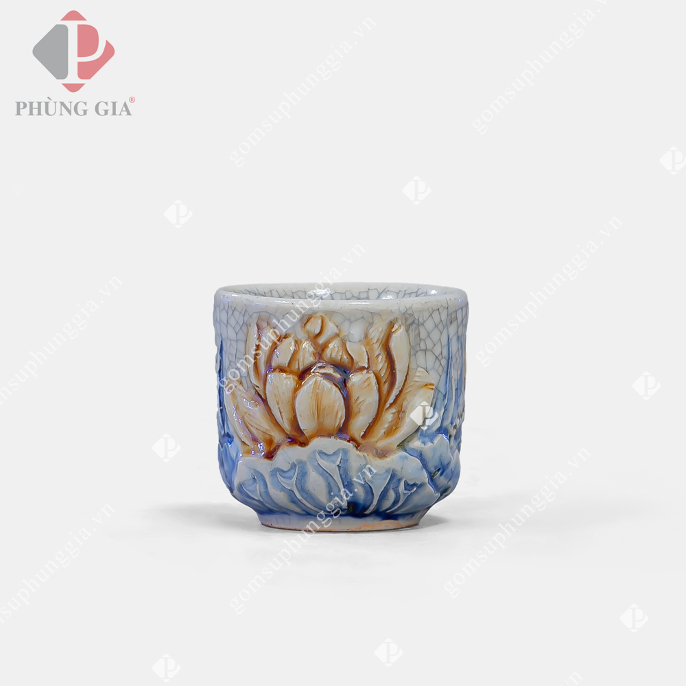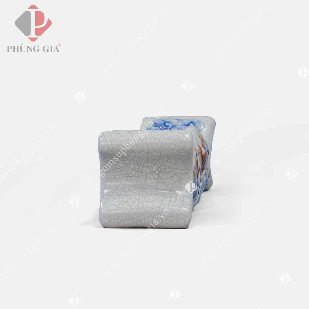 - Các hoa văn họa tiết như hình rồng, phượng, hoa, mây, sóng thủy ba,… được đắp nổi hoặc khắc chìm lên sản phẩm, các hoa văn này sẽ được sử dụng một loại men khác để vẽ lên, có thể là men ngọc, men nâu,… Sự kết hợp giữa các dòng men được người thợ Phùng Gia sử dụng nhuần nhuyễn và cho ra lò những sản phẩm đáp ứng nhu cầu cao của Khách hàng.