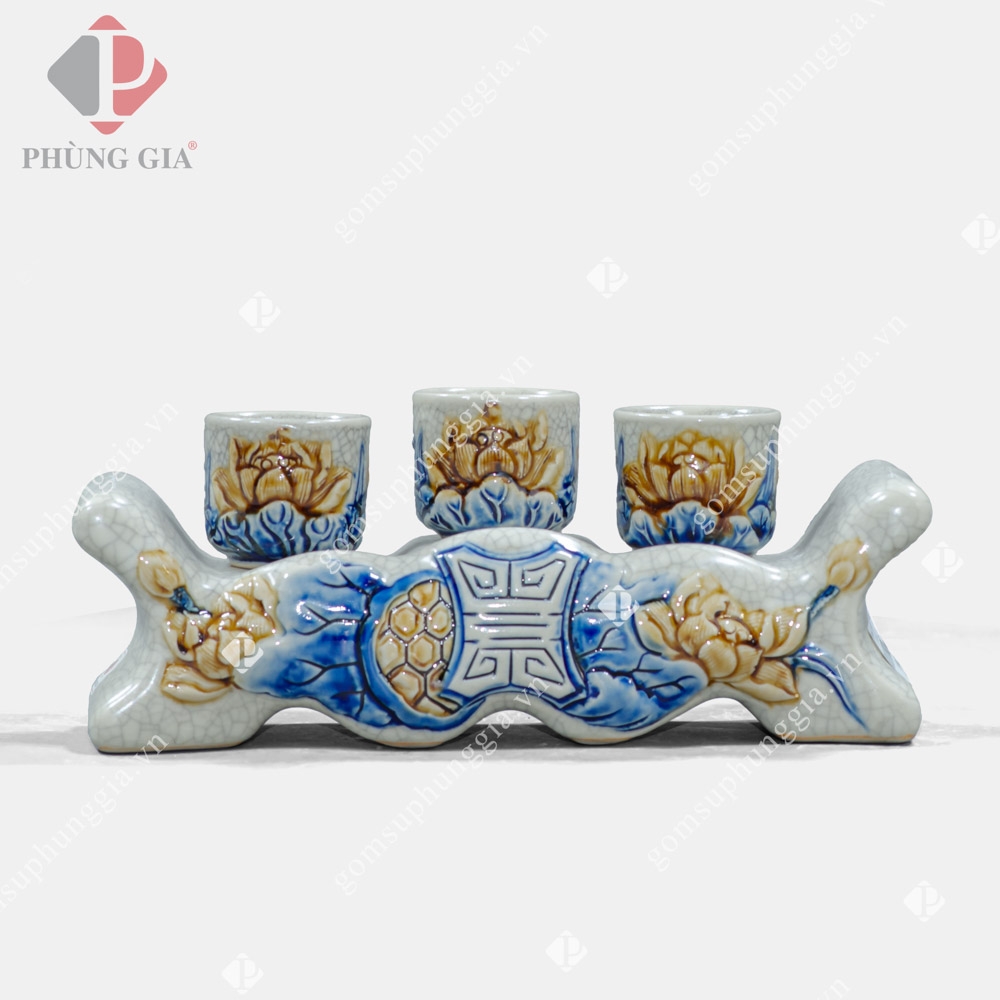 Bộ đồ thờ men rạn đắp nổi tại tư gia khách hàng Phùng Gia.