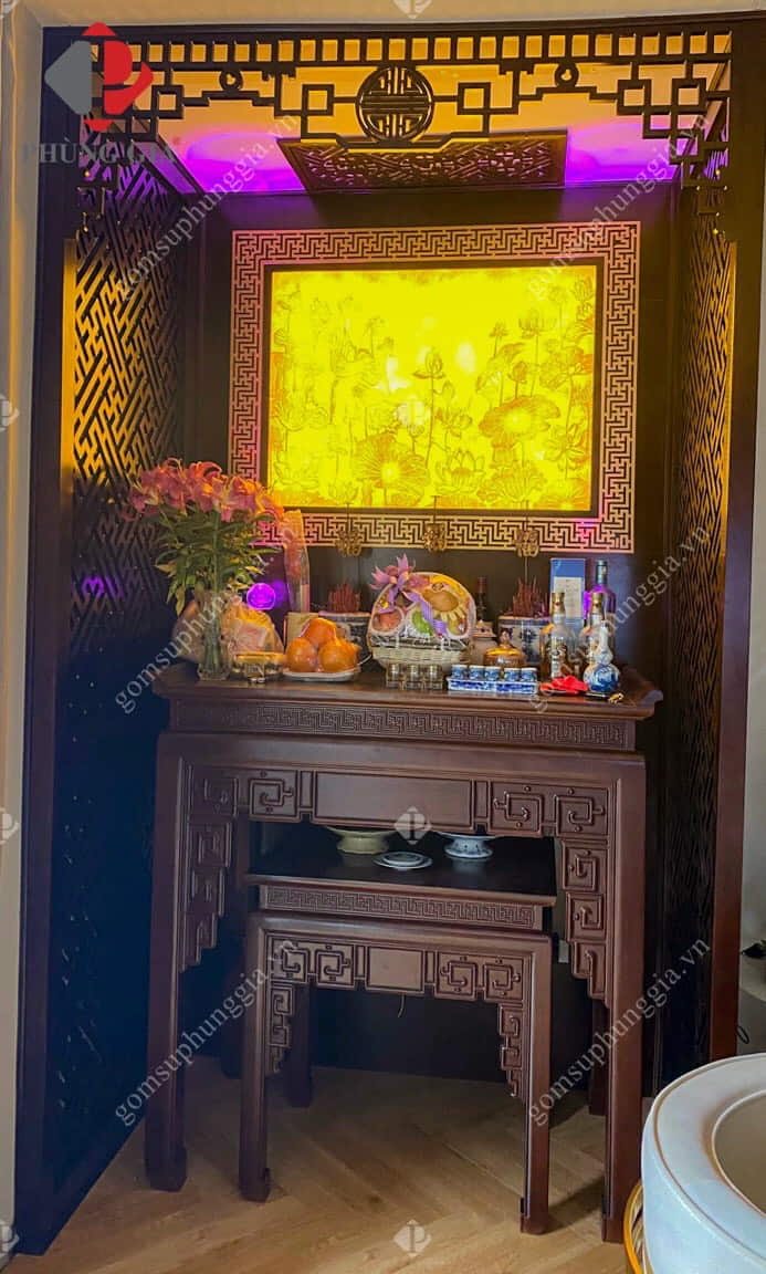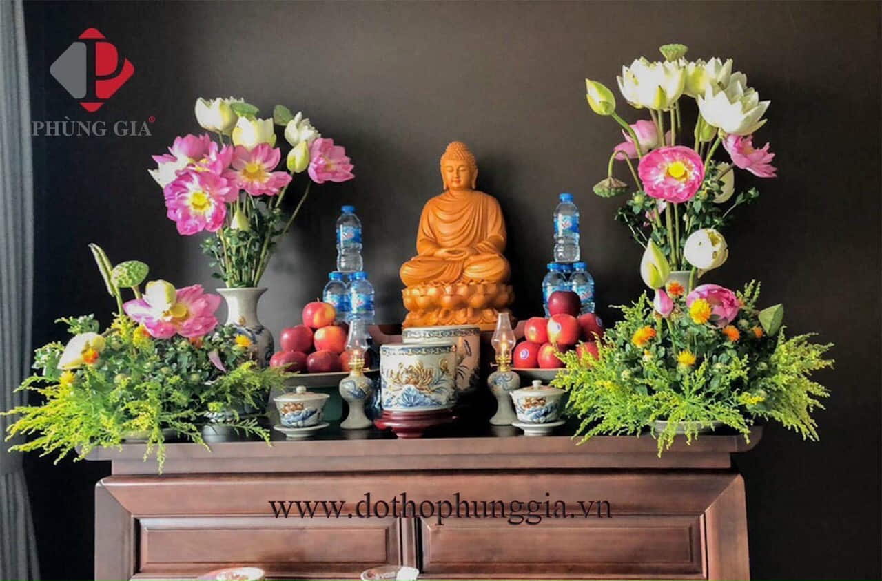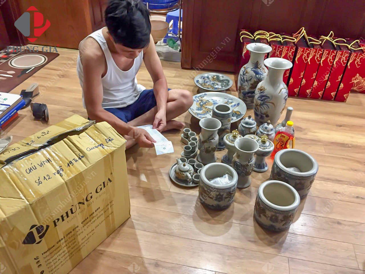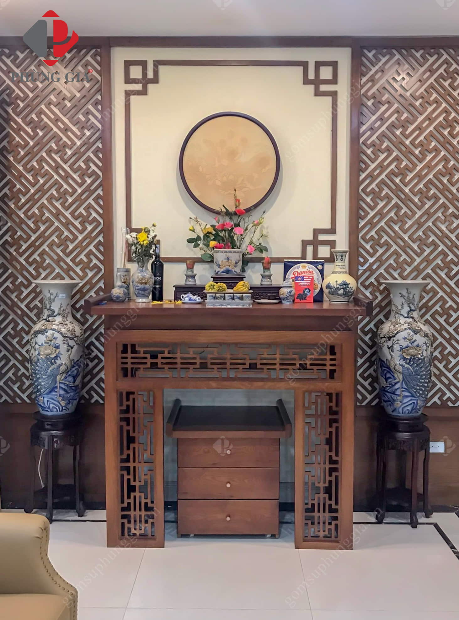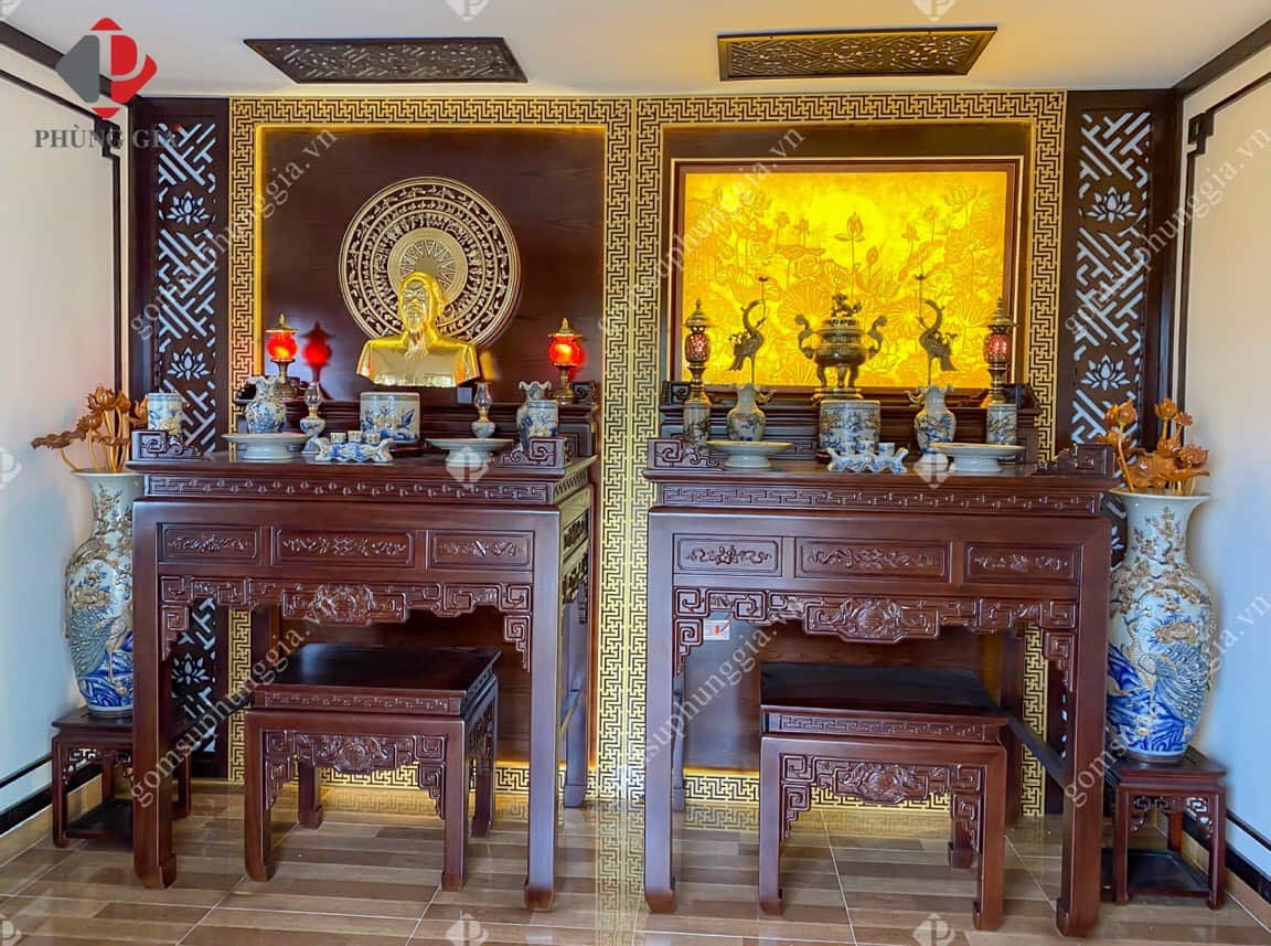 Bộ đồ thờ men rạn đắp nổi tại tư gia khách hàng Phùng Gia.