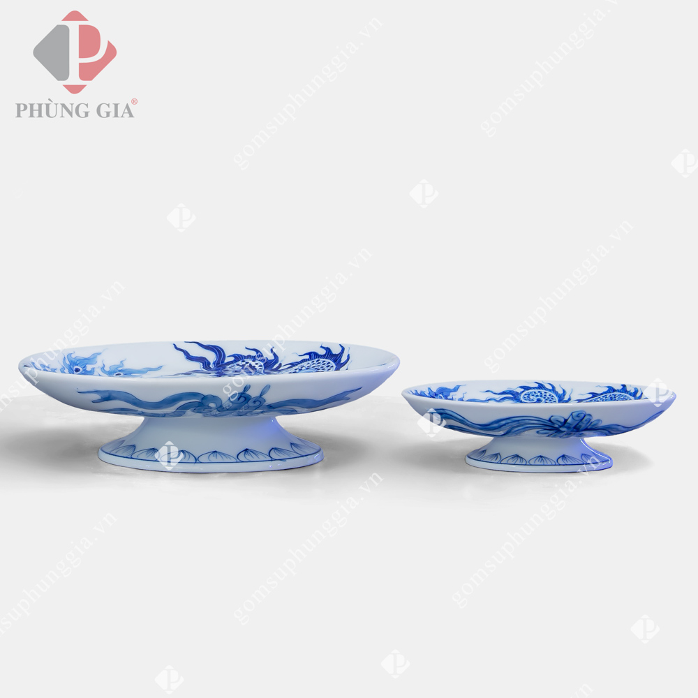 Bộ đồ thờ men lam trắng nổi - 3 bát hương & phụ kiện tương ứng với ban thờ ngang 2m17