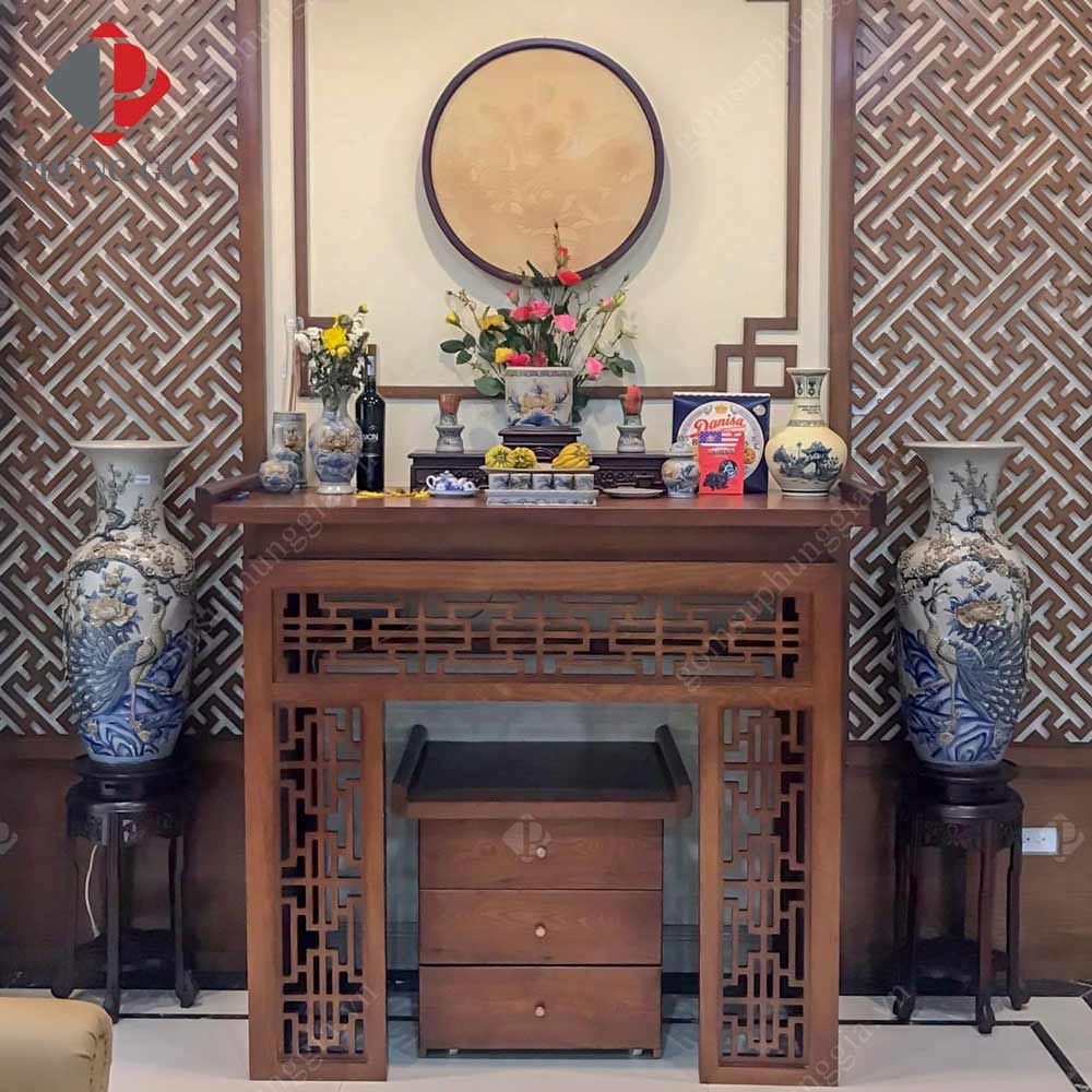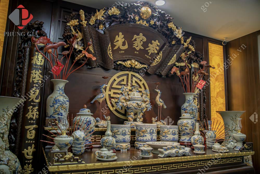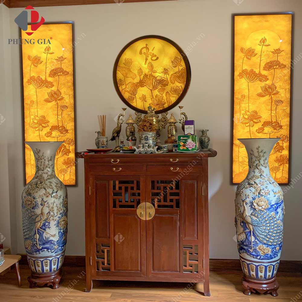 - Lọ hoa: Đôi lọ hoa được đặt ở hai bên bàn thờ dùng để cắm hoa trong những ngày lễ, tết. Đem đến cho không gian thờ tự sự mát mẻ, cùng sự thanh tịnh trong mỗi người.