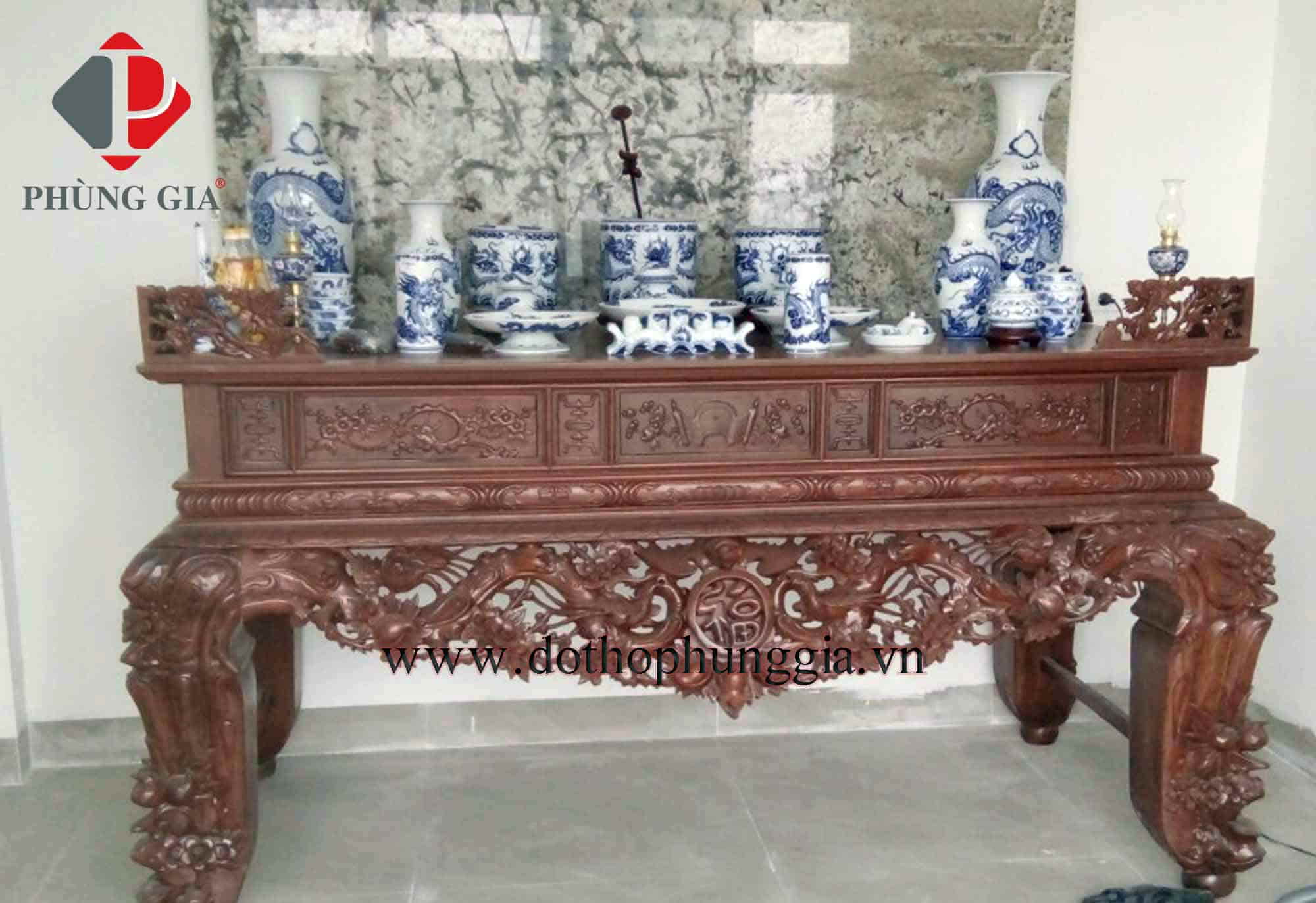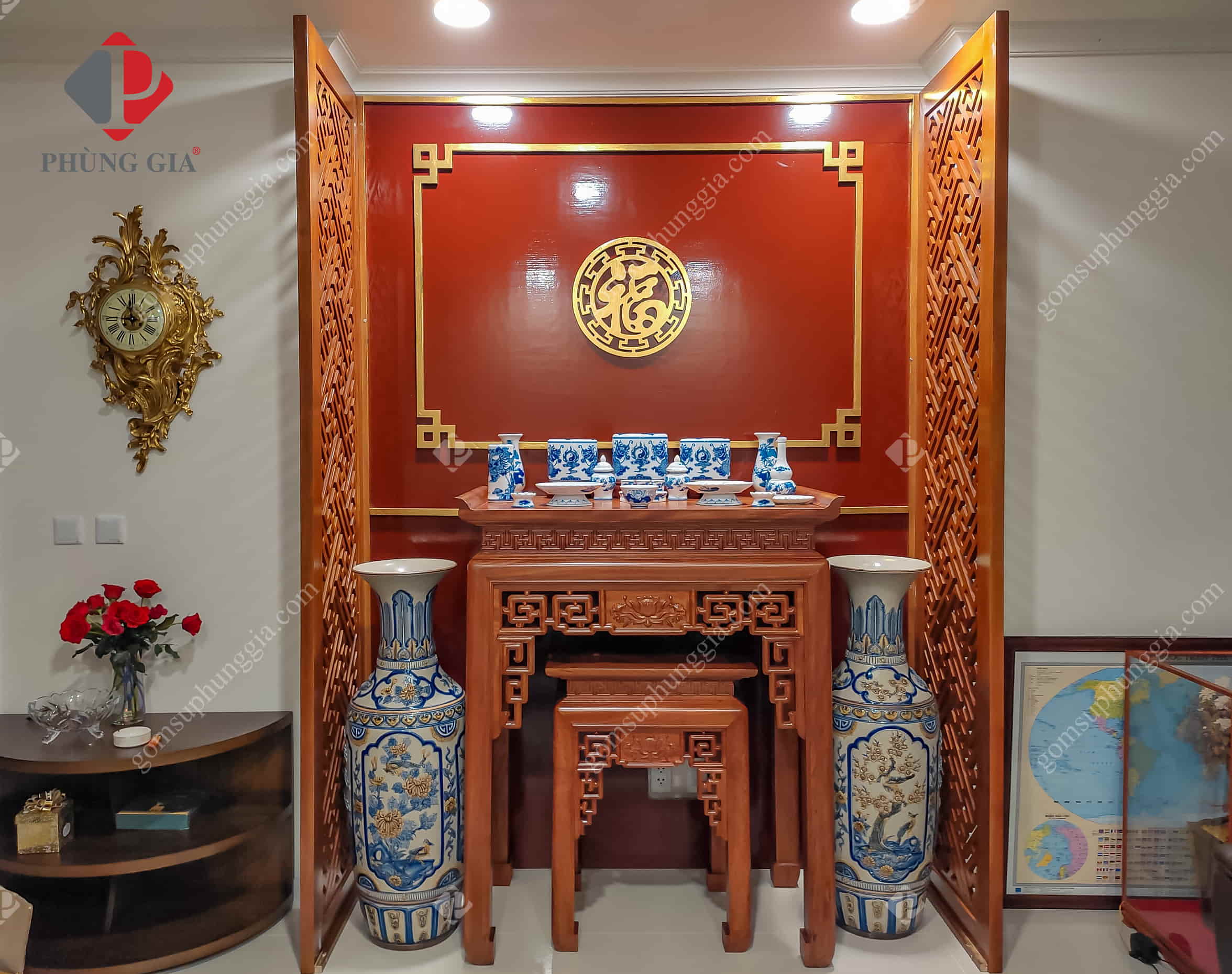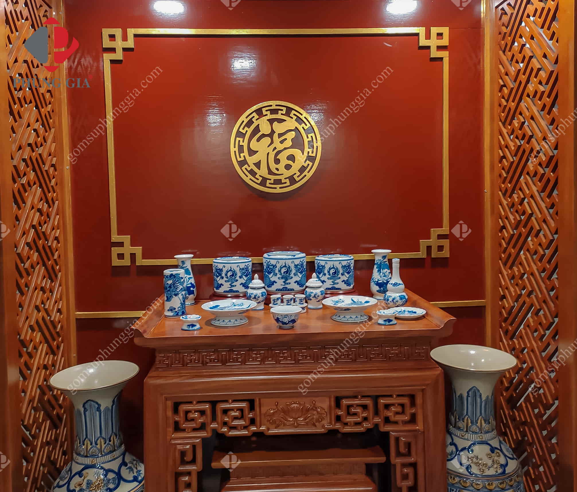 Đồ thờ men lam trắng tại tư gia khách hàng Phùng Gia: