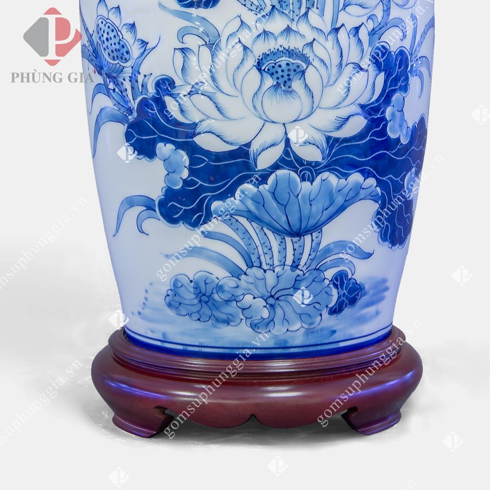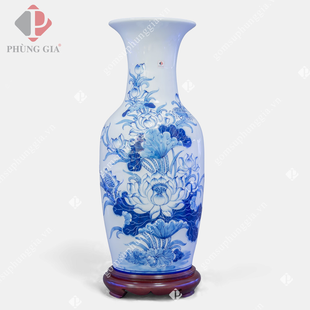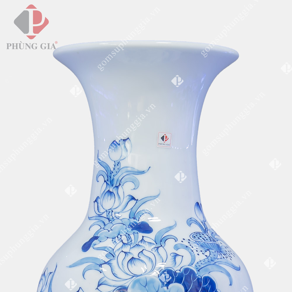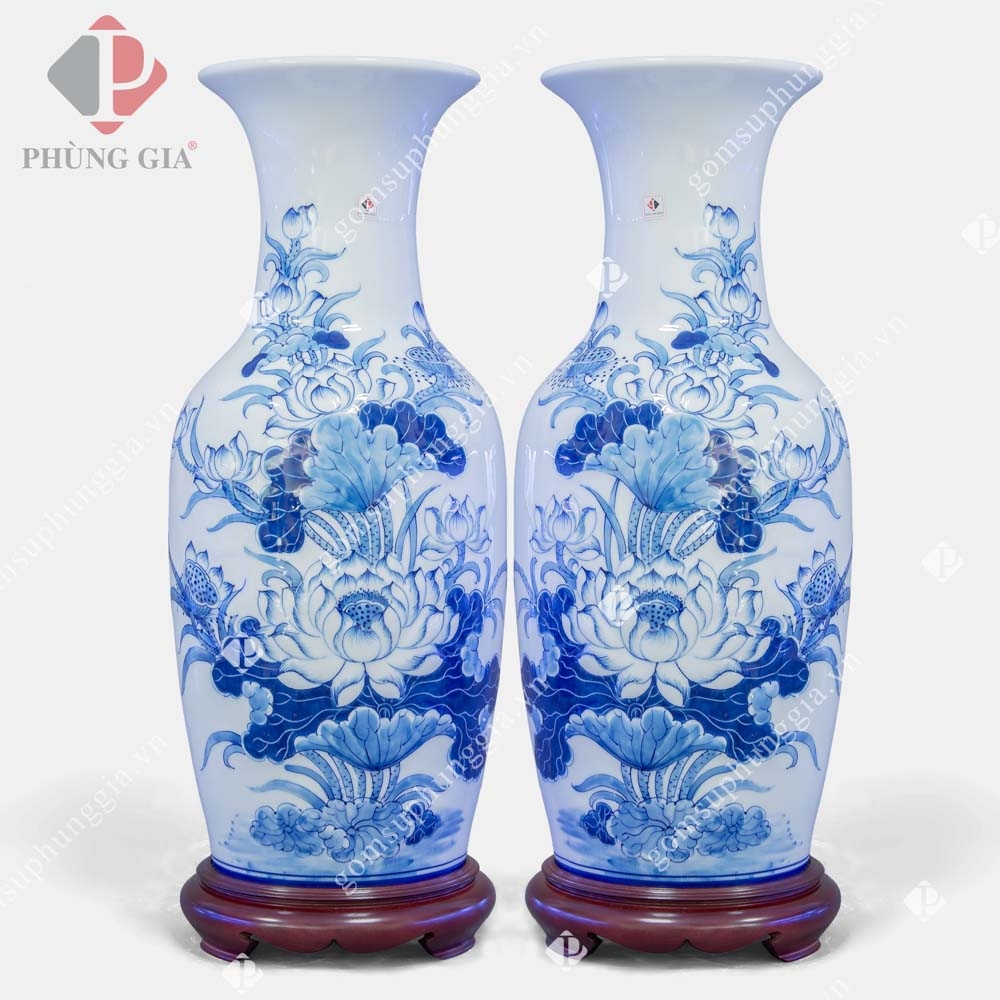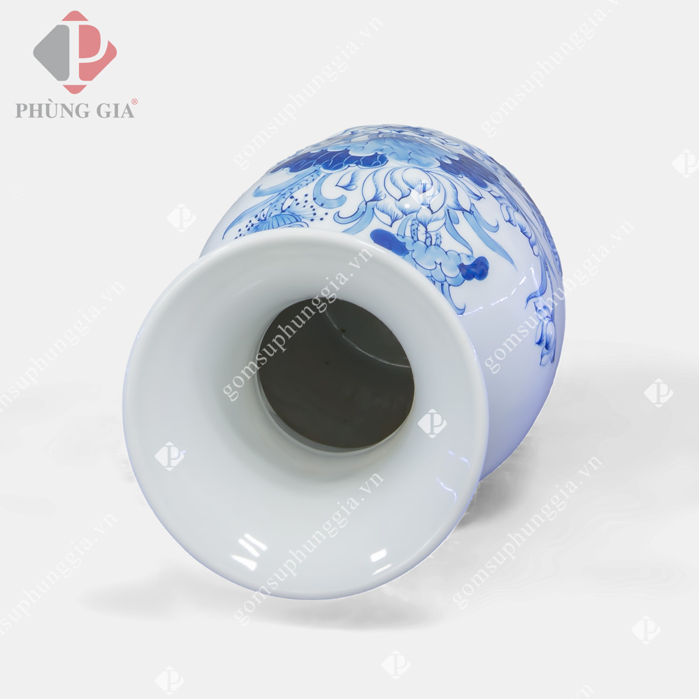 Bộ đồ thờ men lam trắng trơn & lộc bình Phúc Đức 1m6 vẽ tay men xanh ngọc - Tư Gia chị Tuyết - Phú Thuỵ, Gia Lâm, HN