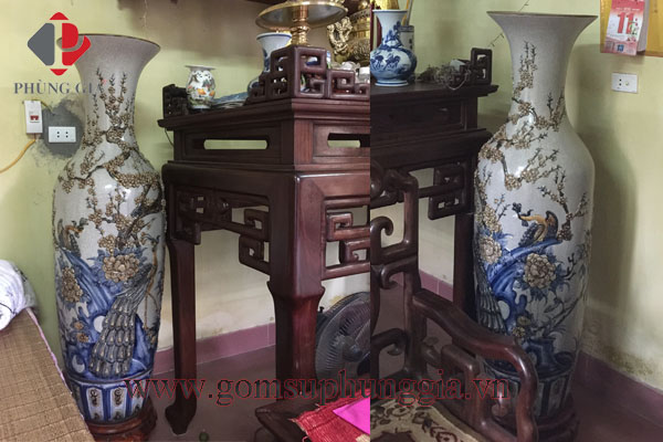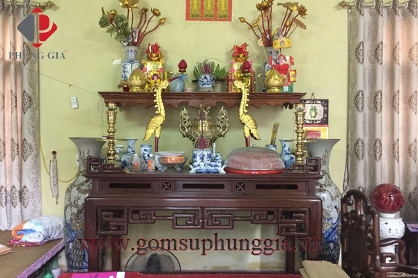 Đạo lý "Uống nước nhớ nguồn, ăn quả nhớ kẻ trồng cây" được dân tộc Việt Nam truyền từ đời này sang đời khác. Đạo lý này còn thể hiện rõ trong văn hóa thờ cúng ông bà tổ tiên, trong đó bát hương, đỉnh đồng,.... là những thứ trung gian để kết nối tâm linh giữa những người sống và những người đã khuất. Vậy cách bài trí bộ đồ thờ cũng được các gia đình đặc biệt quan tâm, sao cho uy nghi, sang trọng, không lãng phí. Gốm Sứ Phùng Gia trong những lần giao hàng đồ thờ trong tháng 10 và 11 năm 2016 có xin phép gia chủ chụp lại vài bức ảnh để làm kỷ niệm, nay xin up lên để quý Khách hàng có thể tham khảo sao cho hợp lý với gia đình mình nhất.