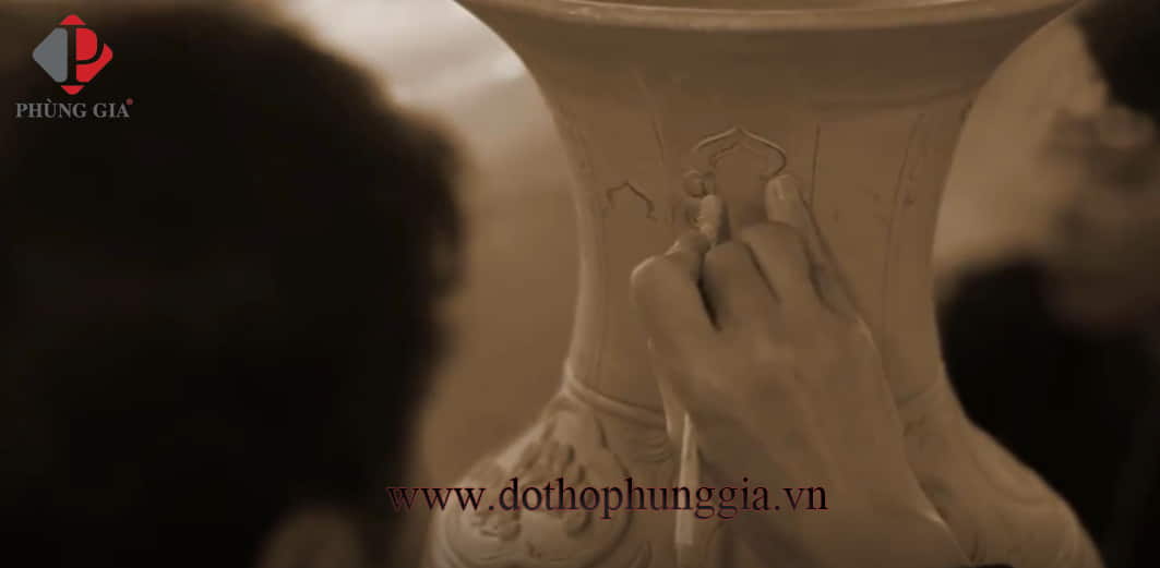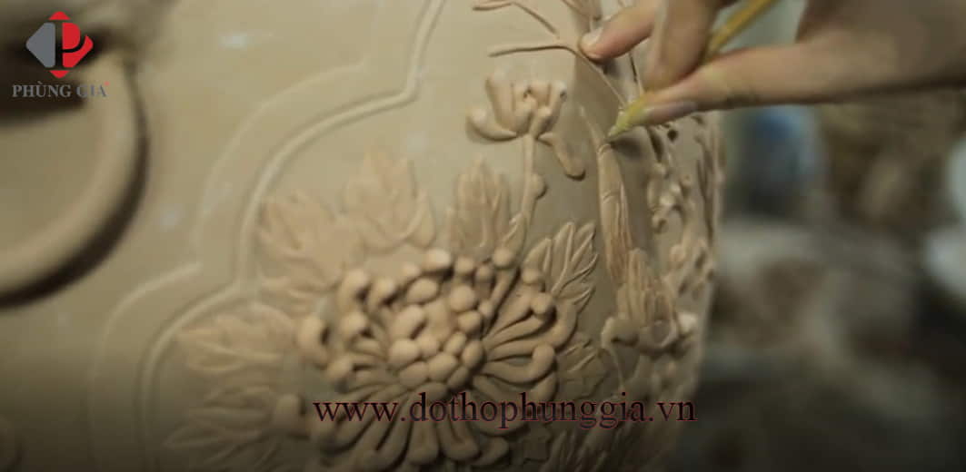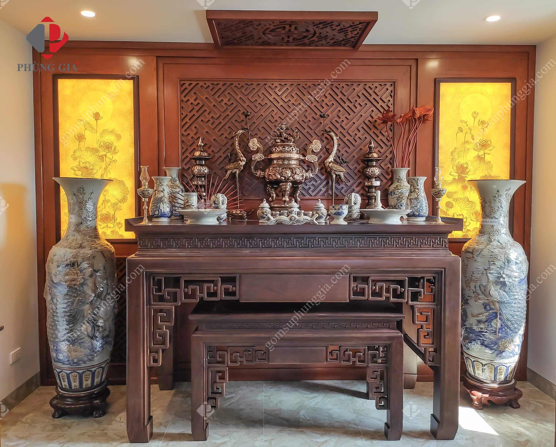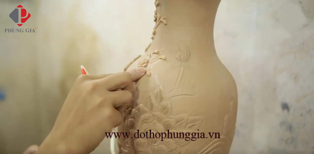 Lộc bình men rạn đắp nổi thủ công tại tư gia khách hàng Phùng Gia