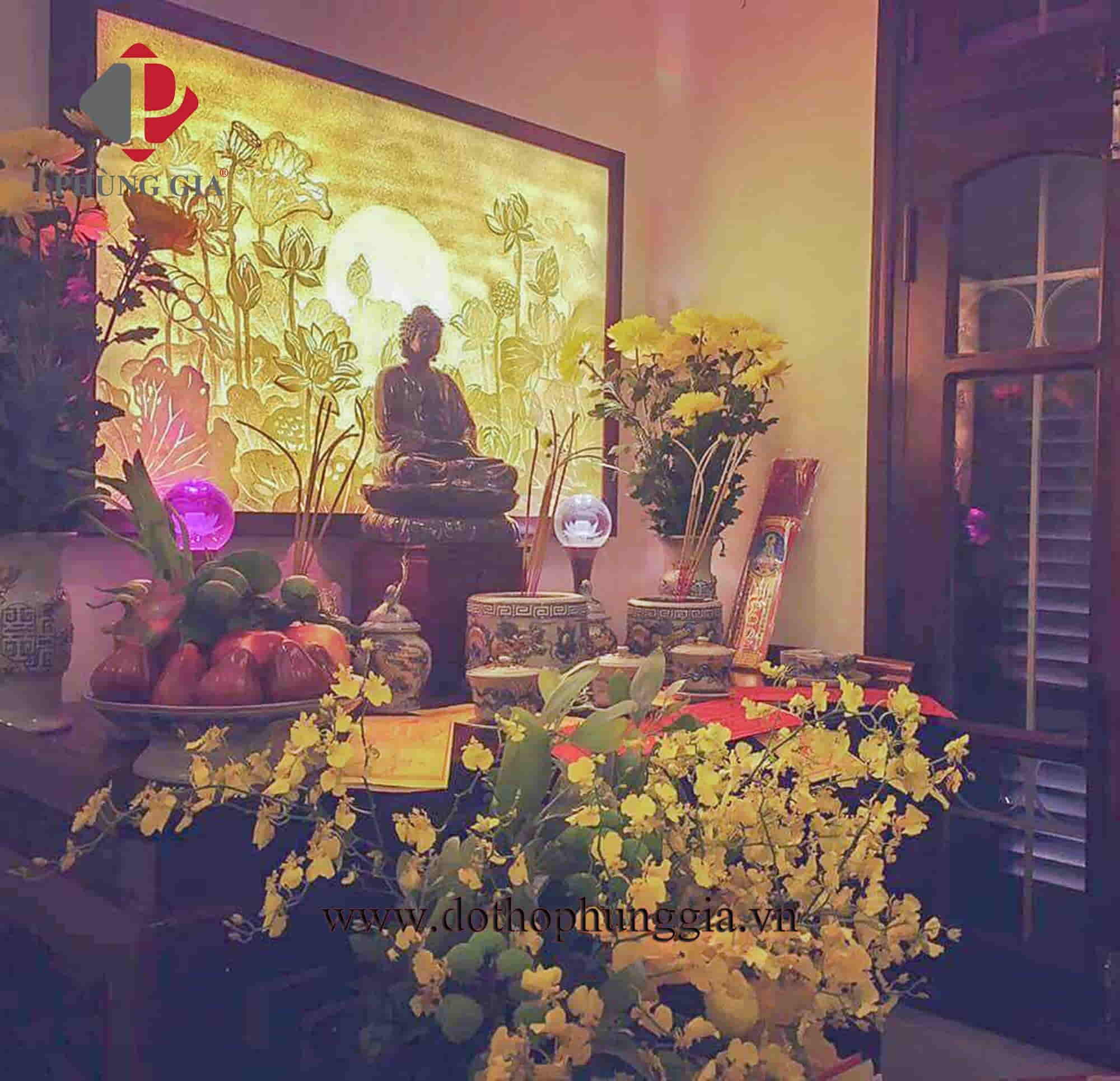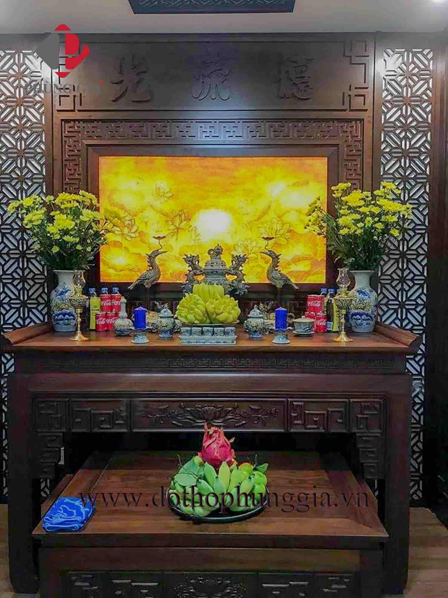Tranh trúc chỉ và đồ thờ Phùng Gia tại tư gia khách hàng