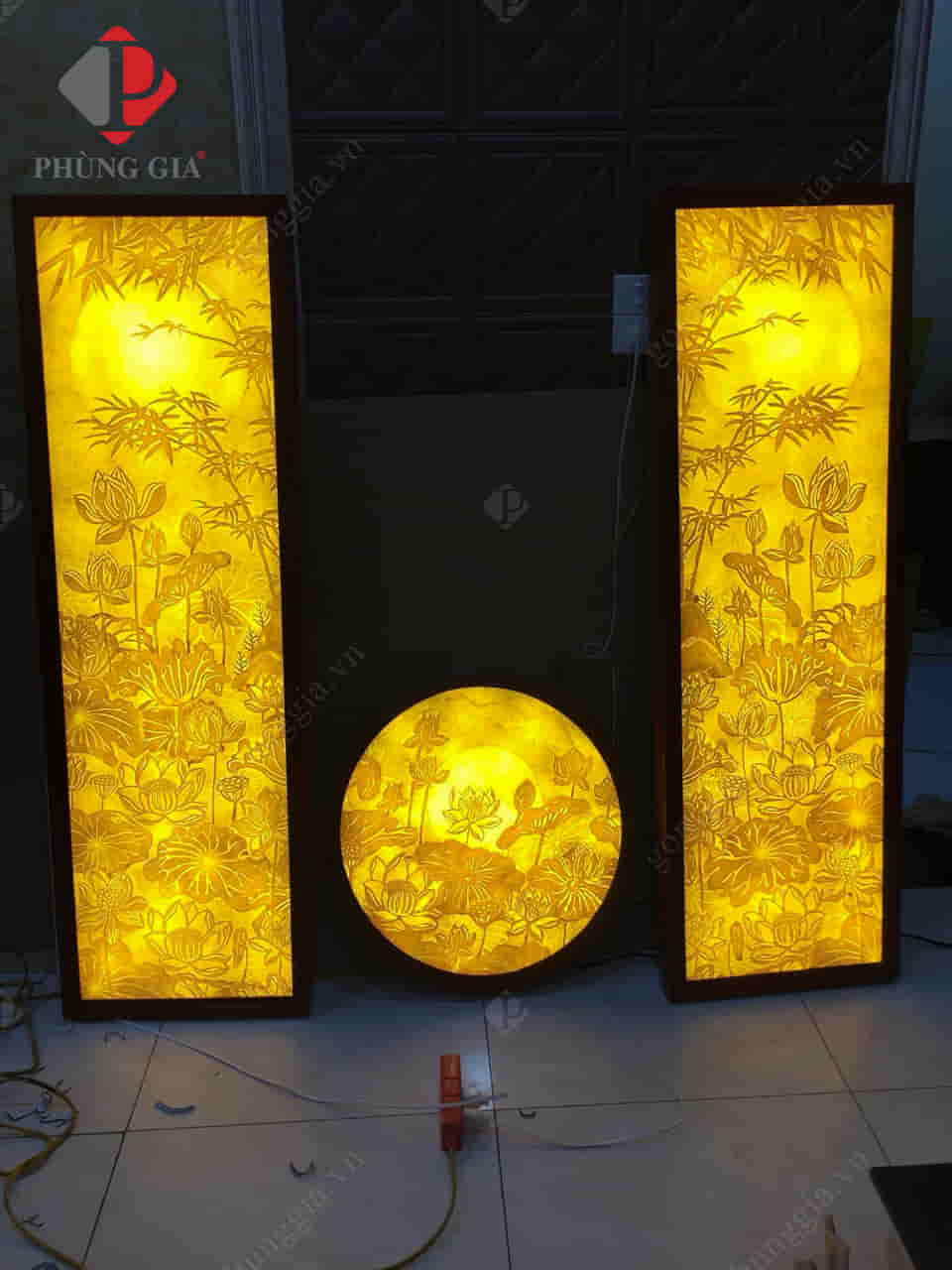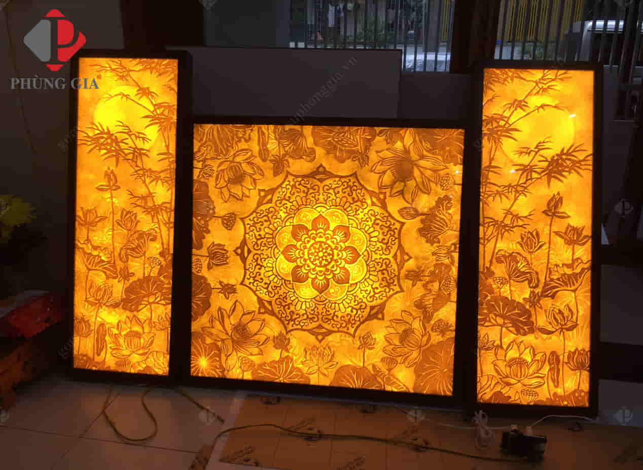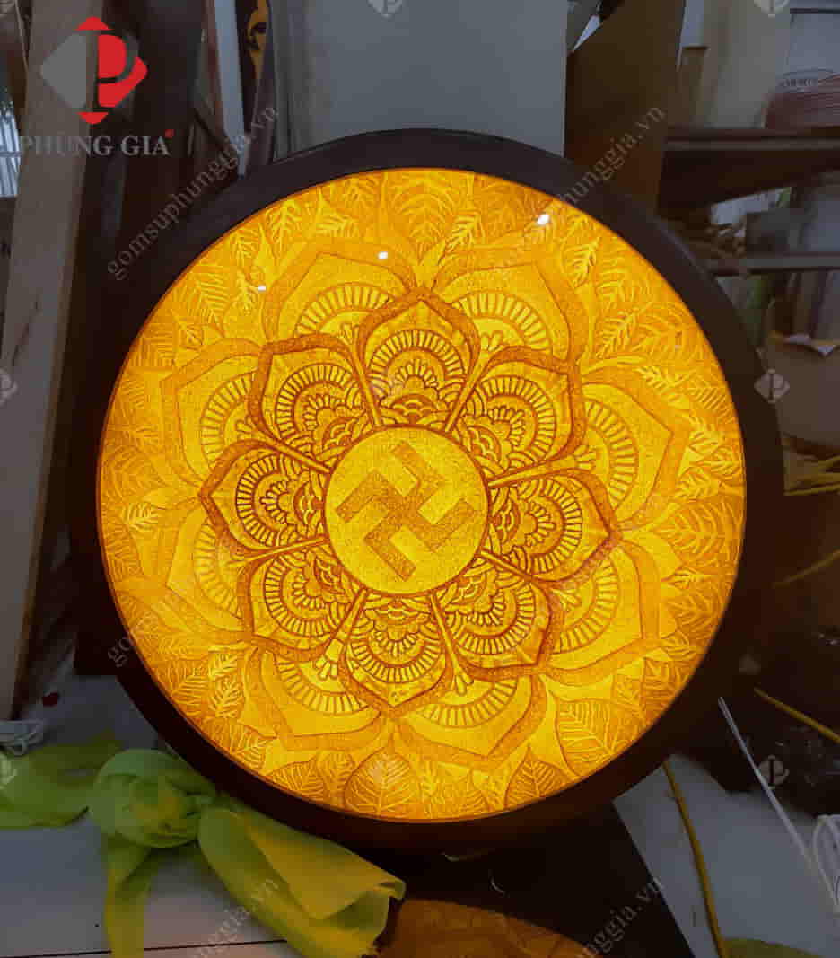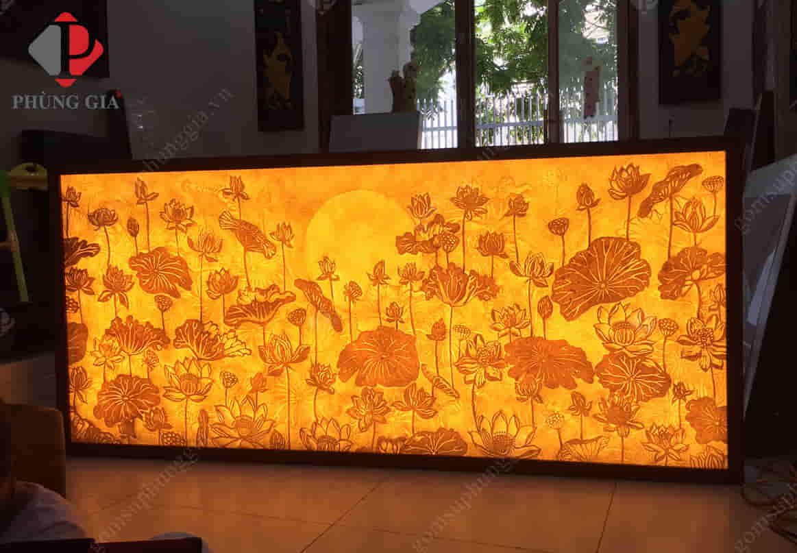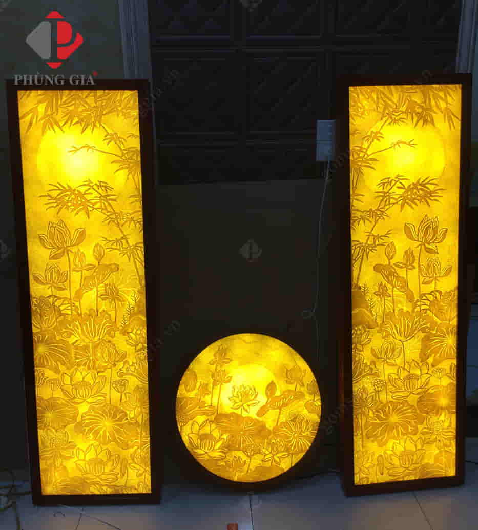 - Kích thước: Tranh được thiết kế với 3 kiểu dáng chính là tranh tròn, tranh vuông (hoặc chữ nhật) và đèn tranh.
