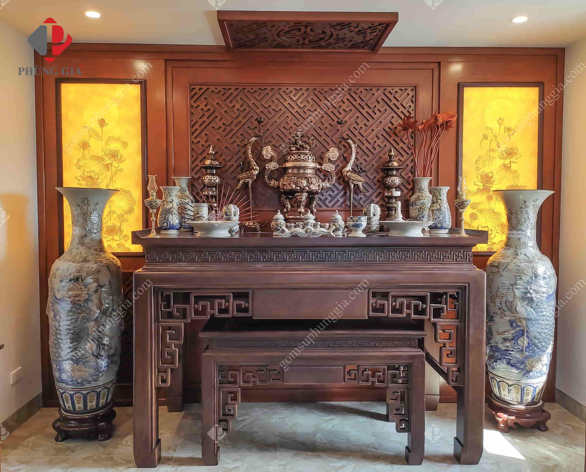 Tranh trúc chỉ và đồ thờ Phùng Gia tại tư gia khách hàng
