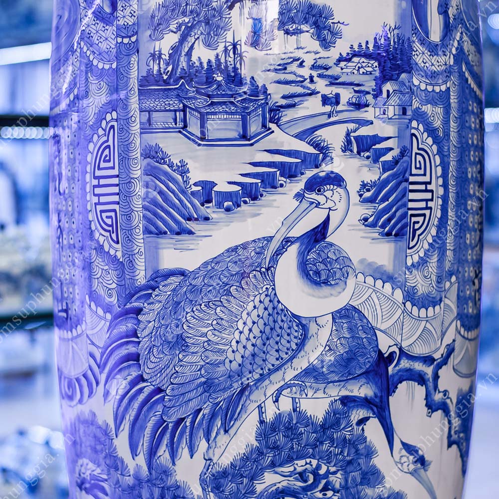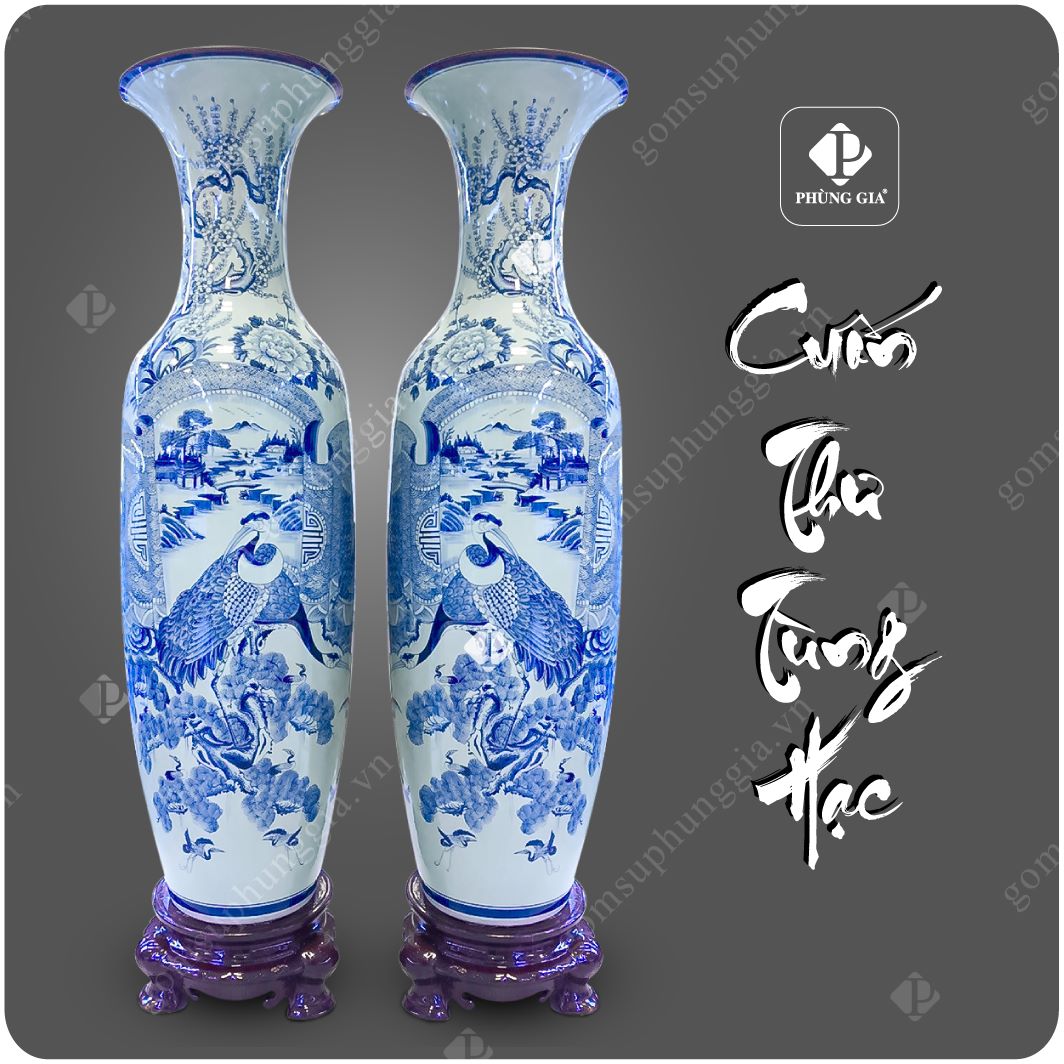 Lộc bình cao 1,4m men xanh ngọc vẽ Cuốn Thư Tùng Hạc