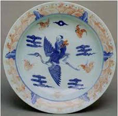 Cảnh vẽ trên đĩa sứ - tiên ông cưỡi Hạc